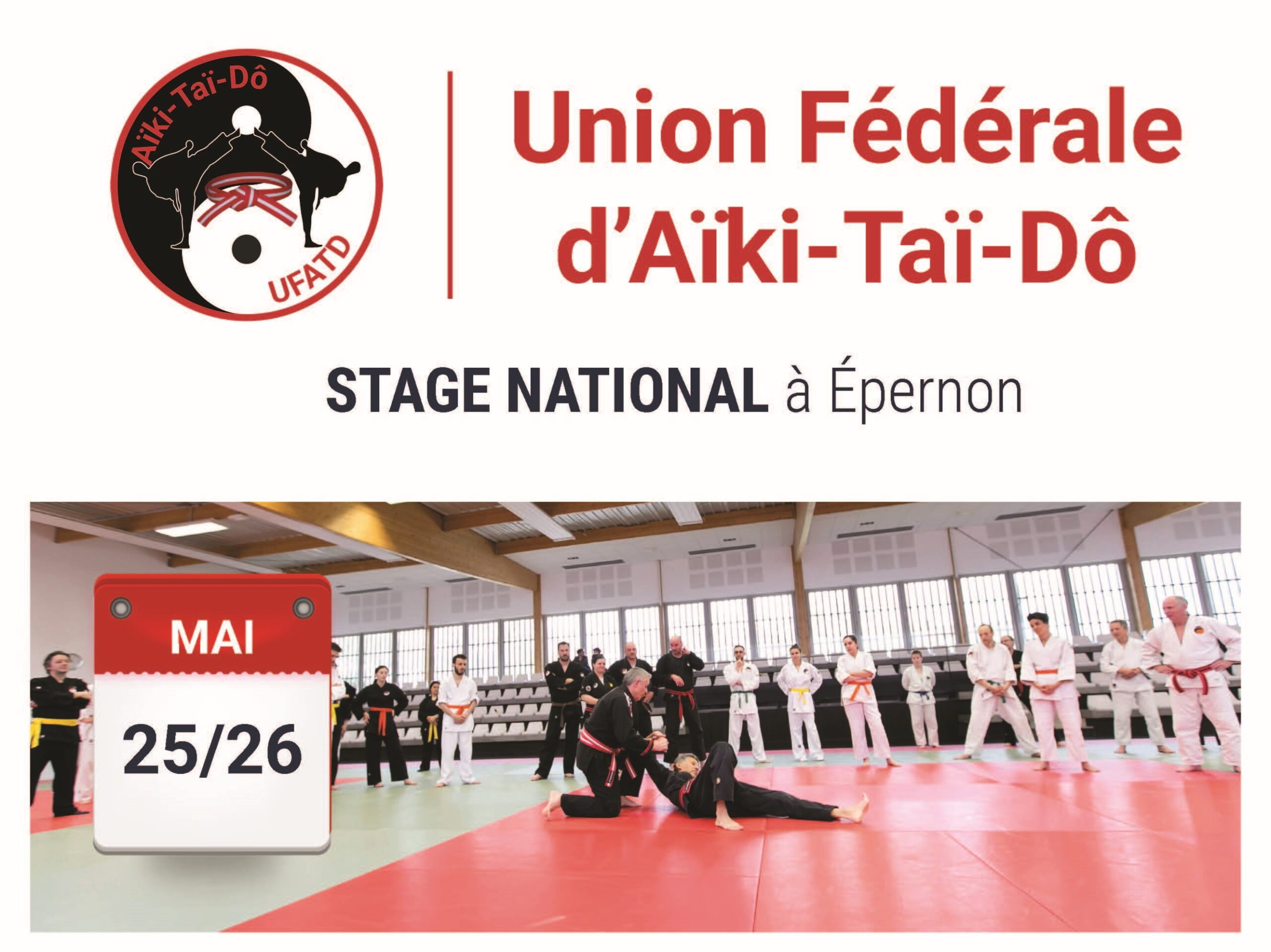 DétailsCette année encore, le stage national d’Aïki-Taï-Dô se déroulera au dojo d’Epernon les 25 et 26 mai prochain. Il sera dirigé par les Conseillers Techniques de l’Union Fédérale d’Aïki-Taï-Dô. Le stage est ouvert à tous les niveaux, aux enfants, aux adultes et aux seniors inscrits dans les clubs d’Aïki-Taï-Dô. Les inscriptions se feront ¹⁄4 d’heure…