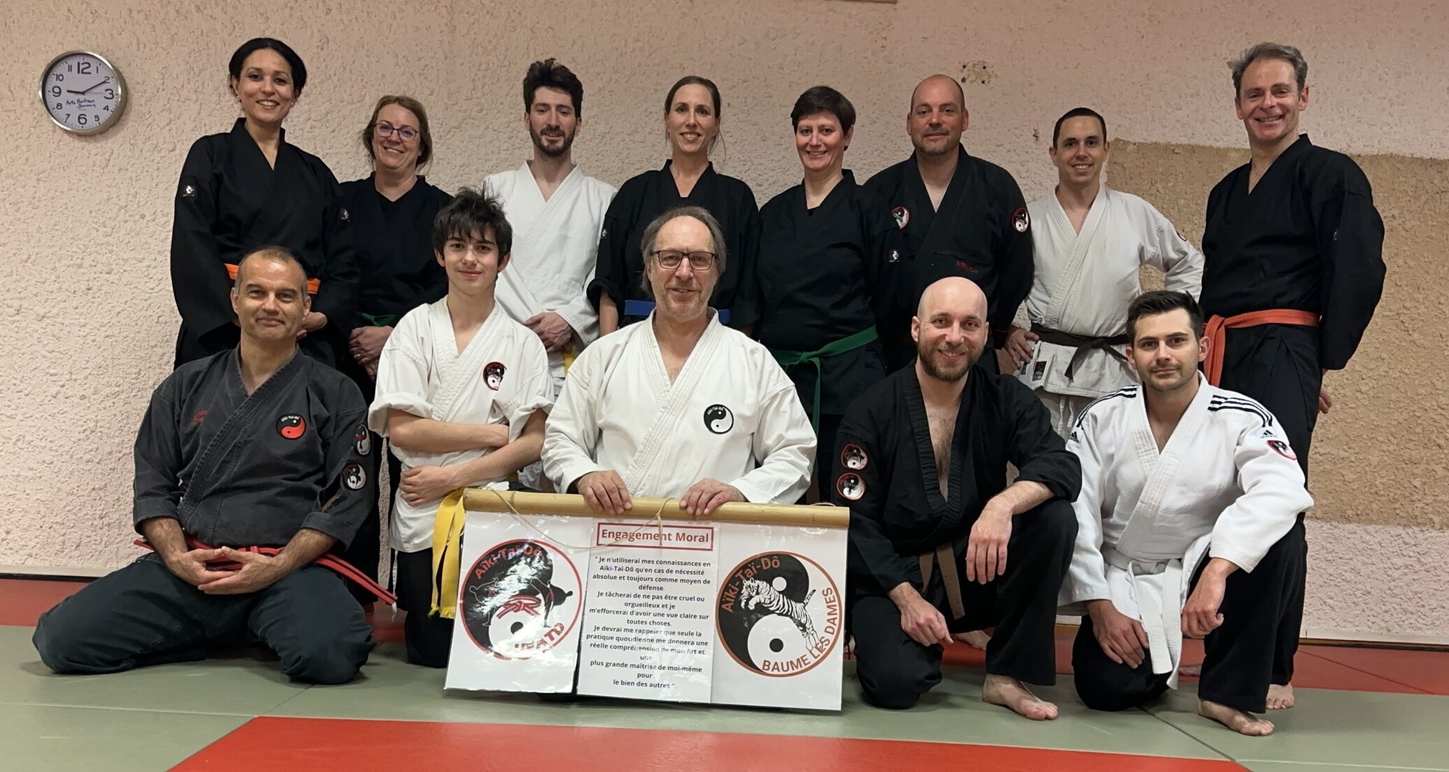 DétailsLudovic, Conseiller Technique de l’UFATD, a rendu visite au Club de Baume-les-Dames pour faire 2 entraînements au mois d’avril. Et comme les clubs de Baume-les-Dames et Besançon sont inséparables, les 2 clubs étaient bien entendu présents sur le tatami. Un bon moment de convivialité qui s’est terminé comme d’habitude par un petit tour au restaurant…