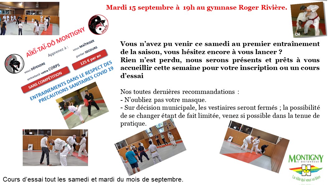 – Sur décision municipale, les vestiaires seront fermés ; la possibilité de se changer étant de fait limitée, venez si possible dans la tenue de pratique.